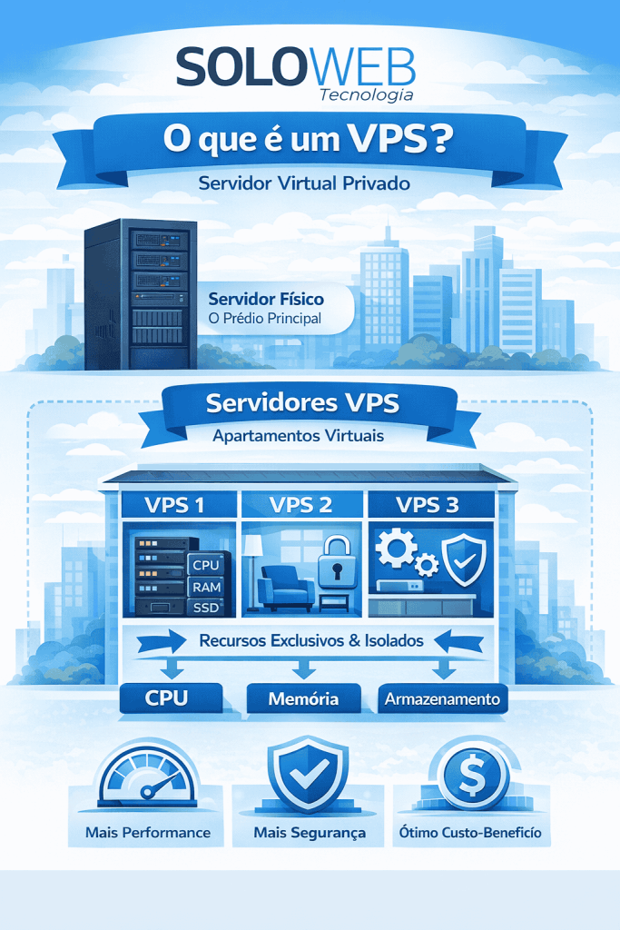 Para entender de forma simples, imagine um prédio (o servidor físico). Dentro dele existem vários apartamentos (os VPS).